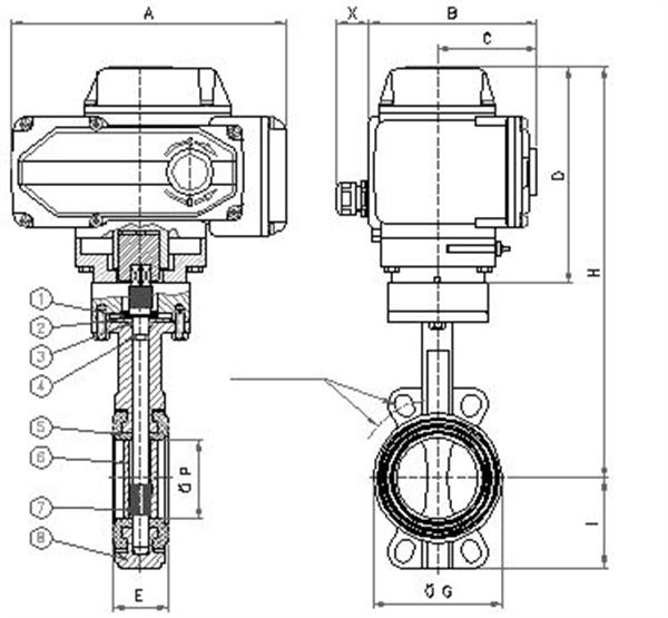 D971X、D971F電動對夾式蝶閥結(jié)構(gòu)圖紙:
