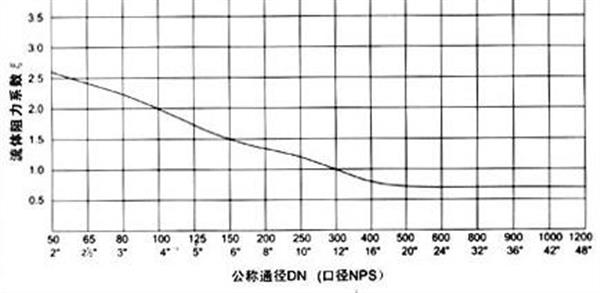 流體阻力小,流體阻力系數ζ為1.3~3,但在低壓工況下,閥瓣不能完全開啟,流體阻力大。流體阻力隨著閥門口徑的增大而增大
